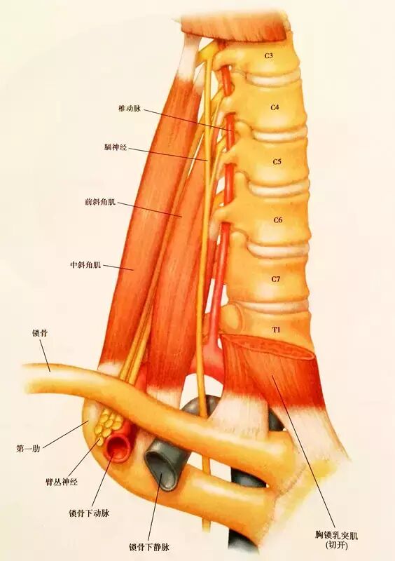 而且,手术后也同样要求提供确切而有效的持续镇痛,这是防止血管痉挛危象的发生的最佳选择,同时也是实现围手术期舒适化医疗的人性化举措。利用超声引导臂丛阻滞就是一个较为理想的技术。目前,超声引导下臂丛神经阻滞根据入路不同分为以下六种:由于锁骨上臂丛神经纤维比较集中,曾被认为是“上肢的脊麻” 。该径路阻滞平面高于肌皮神经及腋神经的位置,也可以阻滞内侧束以及肋间臂神经,同时也有助于缓解止血带造成的疼痛,这是为自手到肩部手术提供手术麻醉及手术后持续镇痛的理想入路。