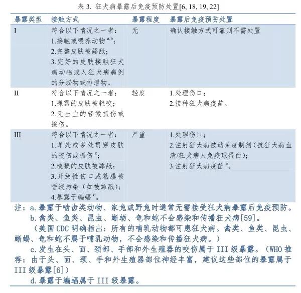 因此,结合 WHO 两个文件,本指南建议:1)对于曾经接受过全程接种者,如 3 个月内再次暴露,在符合 2013 年 WHO 报告中提及的各项条件时,可推迟加强免疫;2)超过 3 个月以上再次暴露者,需第 0 天和第 3 天各接种 1 剂;3)若使用了效力不确定的、之前未全程接种或暴露严重的 III 级暴露者,在再次暴露后则需全程进行接种。此外,也可采用我国《狂犬病暴露预防处置工作规范(2009 年版)》和现行《药典》 中的建议。