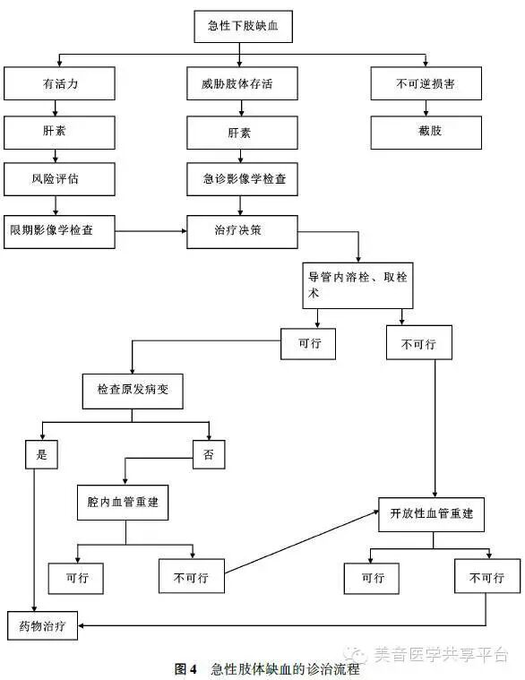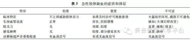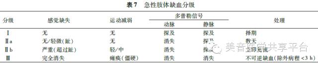 急性肢体缺血(ALI)的患者可在数小时内发生神经和肌肉的不可逆性损伤,因此应强调对所有怀疑ALI的肢体血流情况进行多普勒超卢检查,尽快评估并决定治疗方案(表7)。