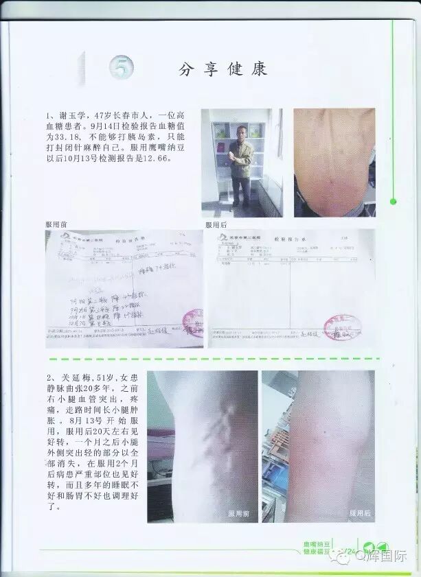亲爱的家人们大家好:我是南京御匾国健科技生物有限公司洛南市场的柴彦栋,下面我给大家分享一下我用了咱们产品以后的效果,用产品前我的血糖是6.4(正常值是3.9/6.1)用了一个月的产品(总共两瓶纳豆、两瓶玛咖片,纳豆每天两次,每次两粒,玛咖每天两次,每次3粒)今天复查血糖是5.4,己经恢复到正常。另外精神状态也好很多。原来工作一天感觉很疲备,现在明显改善了。所以通过自己用产品更加对我们的产品有了进一步的肯定,既然我们的目的一致走进了御匾这个大家庭,我们就要团结一致在陈总、艾总,张总的带领下,心往一块想,劲往一处使,尽我们最大的努力把我们的事业做大、做强。另外虽然我不太在群里露脸,但我也一直关注着大家,我觉得就我而言我一定要做到落地,脚踏实地去干就好了。最后祝大家身体健康,事业有成!亲爱的御匾家人们我爱你们!