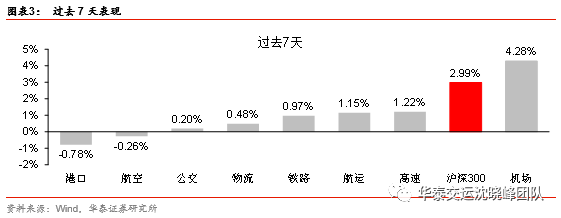 本周沪深300指数上涨2.99%,交运指数上涨0.68%。