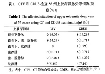2.3 MSCT上肢静脉直接成像与彩色多普勒超声检查结果的比较
