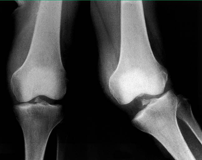若必须进行平片检查,则应进行以下角度的摄片:前后位;侧位;髌骨位(膝关节屈曲45°)。