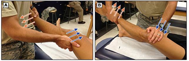 触诊对于内侧副韧带的诊断及排除其他相关损伤(撕脱骨折、胫骨平台骨折、肌肉、肌腱或韧带损伤)极为重要。触诊检查骨组织及软组织时,注意有无触痛、发热及劈啪声或捻发音。骨性标志的触诊包括关节线(内侧、后内侧角、后侧及外侧)、股骨髁、胫骨平台、髌骨及髌骨面、胫骨结节,胫骨干骺端以及鹅足区。软组织的触诊包括整个内侧副韧带全长、髌骨支持带、髌腱及股四头肌肌腱、伸肌系统以及相连的肌肉(股薄肌,缝匠肌、半膜肌、半腱肌、腓肠肌内侧头和股四头肌)。