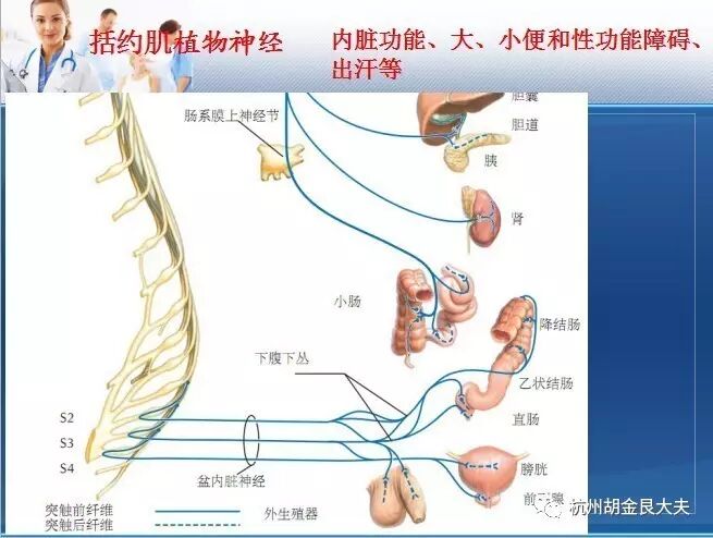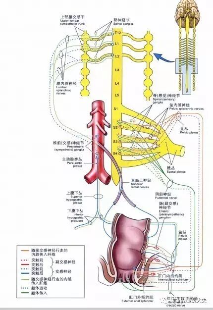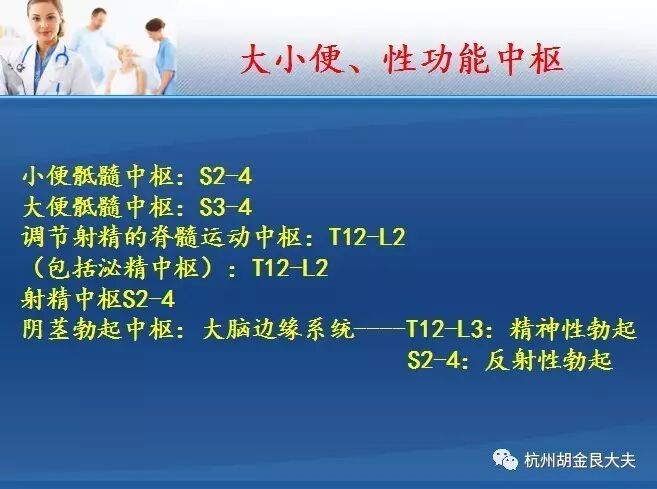 脊髓圆锥下极位于T12一L1之间,其中大多数在L1平面,其周围有马尾神经将其包围。此解剖学特征决定了圆锥周围损伤为马尾及脊髓圆锥混合伤为主。但马尾神经与脊髓圆锥的组织性质不同,前者属于周围神经,对外力的缓冲力强,后者属于中枢神经较固定,对外力的缓冲力差。故虽然同样受到创伤,可仅出现脊髓圆锥损害。脊髓圆锥部有膀胱中枢(s2-4),肛门直肠中枢(s3 ),故单纯脊髓圆锥的临床特点为膀胱过度膨胀与麻痹性失禁、大小便失禁、性功能障碍、会阴部感觉障碍。因为运动节段在 以上,故未受到影响。