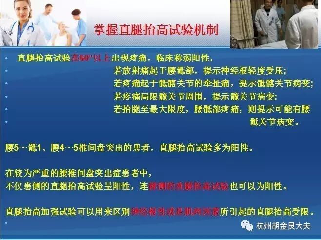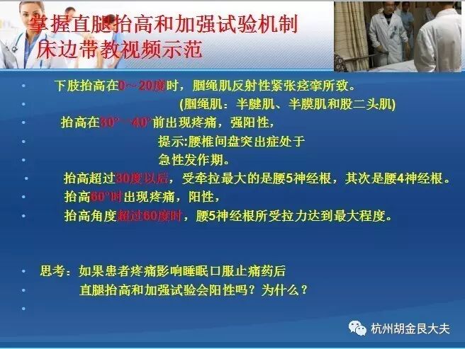 直腿抬高试验及加强试验 | 50 | 检查手法:病人仰卧(5),患侧下肢完全伸直(5), | 2 |