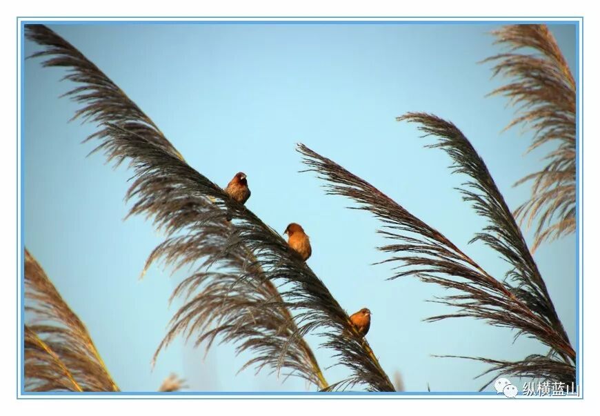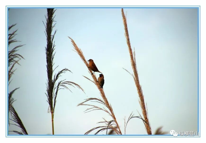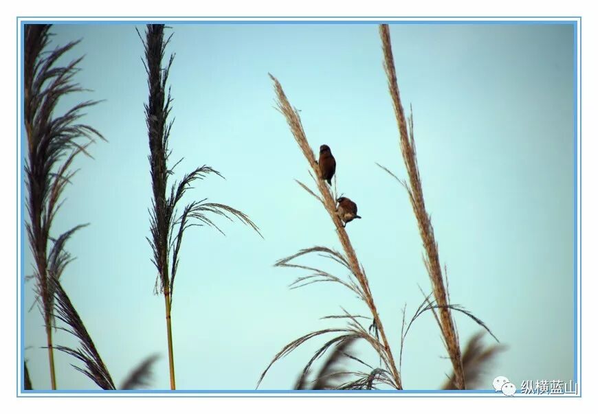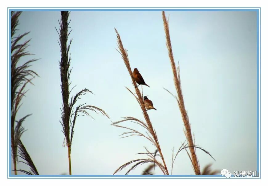 其它小鸟 一群 觅食 在芦苇上