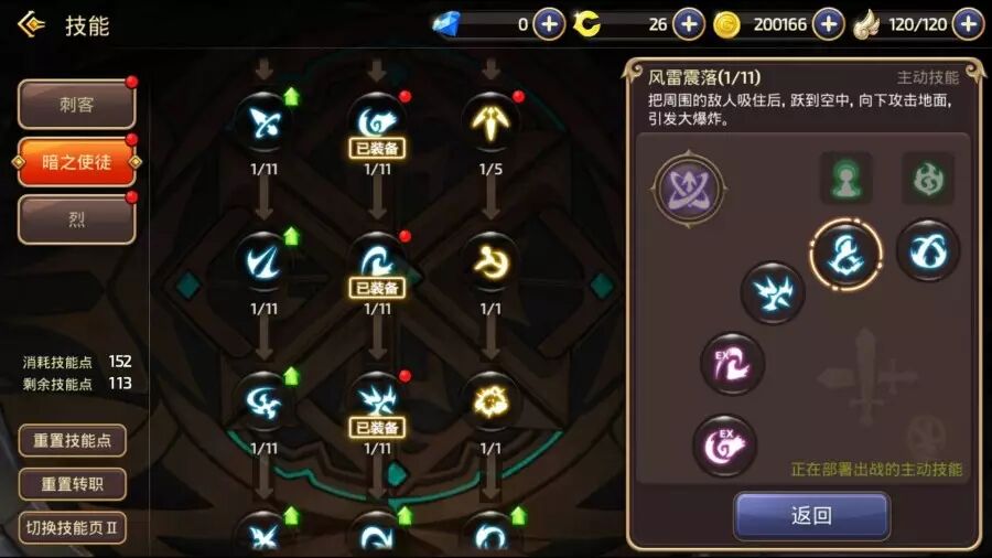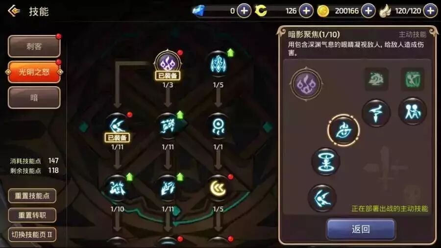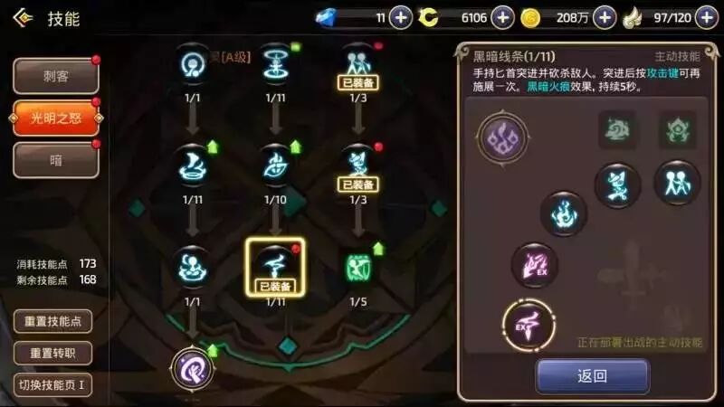 黑暗线条:用匕首突进并砍杀敌人,突进后可按攻击键再次施展(突进技能,能快速的接近远程职业或者追击逃跑的敌人)。