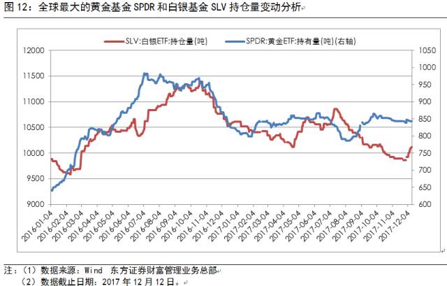 11月,全球大宗商品表现较好,代表全球大宗商品市场的S&P GSCI Total Return Index上涨1.38%,布伦特原油大涨3.58%,黄金和白银现货价格分别上涨0.30%和下跌1.70%。12月12日,金银比接近78.75,已经非常接近历史高峰。历史上,金银比在2003年6月、2008年12月、2016年7月三次短暂增至80附近,后迅速走低,从历史水平看,当前的金银比显示白银存在超卖,金银比有回落的可能。值得注意的是,SLV持仓量自今年7月中旬至11月末逐月大幅下降991吨后,进入12月份开始拐头上升。