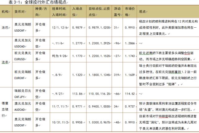 11月,全球大宗商品表现较好,代表全球大宗商品市场的S&P GSCI Total Return Index上涨1.38%,布伦特原油大涨3.58%,黄金和白银现货价格分别上涨0.30%和下跌1.70%。12月12日,金银比接近78.75,已经非常接近历史高峰。SLV持仓量自今年7月中旬至11月末逐月大幅下降991吨后,进入12月份开始拐头上升。当前黄金价格和白银价格较6年前最高峰分别下跌了36%和68%,从这个角度看,贵金属下跌空间不大,对组合而言,具备一定的配置价值。我们不期待白银短时间内就有很亮眼的表现,但对其未来的表现持乐观态度,12月组合内增配白银比重至11%。9-11月份,布伦特原油原油价格连续三个月上涨,累积涨幅18.6%。因油价持续走高以及促使美国页岩油产商加大生产。依然坚持高抛低吸波段操作的思路,配比3%。