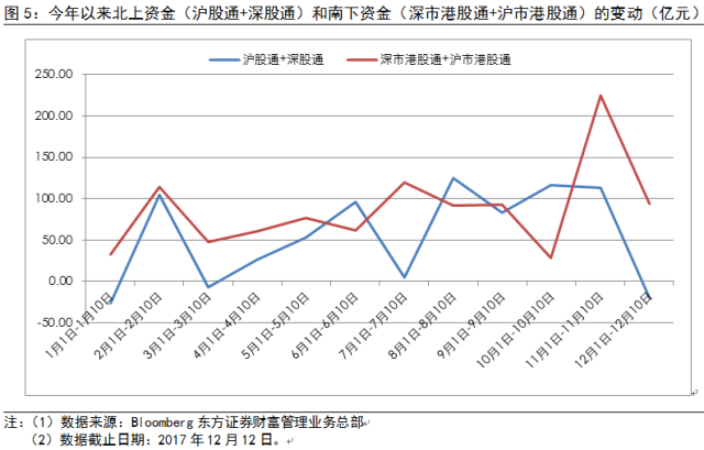 今年以来,全球股市走牛,越南股市领跑全球,越南胡志明指数涨幅高达45.06%,香港、印度、中国、菲律宾、巴西、韩国、美国等市场涨幅均在20-30%之间,德、法、意、台湾等市场涨幅均在10-20%之间。11月,A股中小创板块、印度、欧洲市场出现大幅回调,美、日、香港、越南等市场大幅攀升。12月维持11月的风险资产配比,增加现金类比重至12%。即使美国税改法案顺利通过,我们依然对美股表示谨慎防止获利回调压力,12月低配美股比例为3%。欧元区经济复苏持续,欧股配比6%。截止今年12月12日,南下资金(深市港股通+沪市港股通)合计2963.37亿元,远远超出北上资金(沪股通+深股通)1899.81亿元。8-11月,南下资金逐月增加,北上资金呈下降趋势,说明H股对内地投资者的吸引力强劲,A股对香港资金的吸引力有所减弱,12月上旬双向资金均较11月同期降幅明显,表明A股和H股投资者风险偏好有所回落。12月维持A股配比28%,H股比重为6%,依然建议继续挖掘真正有业绩支撑、安全边际高的创业板和中证500成份股,以期获得较高风险收益比。