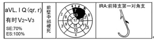 Q波(qs或qr型)出现在aVL、Ⅰ导联,有时还出现在V2~V3导联。一般认为,aVL导联ST段抬高幅度大于Ⅰ导联,QaVL>QⅠ,梗死部位累及前壁的中部及基底部(7、13区),也称局限性前壁梗死(Limited anterior MI);梗死相关冠脉为前降支第一对角支(图4)。 365医学网 转载请注明