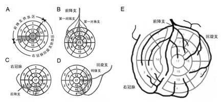 图1 左室分区与冠脉分布示意图 365医学网 转载请注明