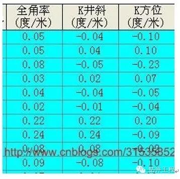 一般我们看某段是否在定向钻井还是复合钻井,及定向钻具的造斜率都可以参看全角率,K井斜,K方位。这三栏是钻具在实际地层的真实值很有指导意义。比如某种钻具组合稳斜钻进增斜会是多少或者,复合钻能有多少的增斜等。一般小数点后面第二位有值,且值很小被认为是复合钻进,而第一位就有值被认为定向钻进。