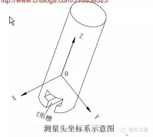 这种测斜仪是利用当地已知的重力场和地磁场做为基准定义方向参数的,并利用定向探管坐标系与基准的相互关系计算出方向参数,因此需要建立探管测量头坐标系是很自然的。