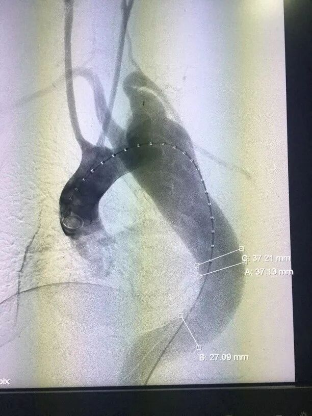 病例2:主动脉夹层,术前造影显示(图2),III型弓,夹层累及左颈总动脉远端,降主动脉迂曲严重;