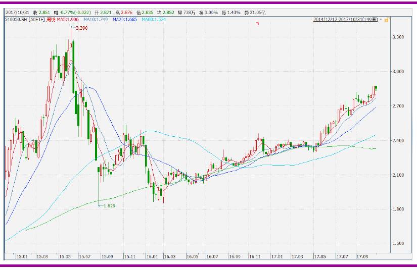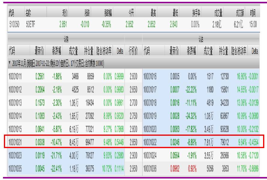 图表7:上证50ETF期权11月合约价格变化表(2017年10月31日) 丁酉 肖鸡 庚戌 辛卯