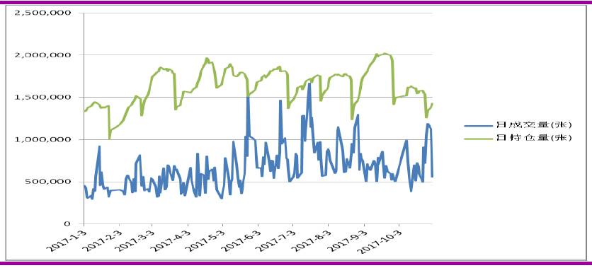 图表5:50ETF期权总成交量和总持仓量(2017年10月31日)