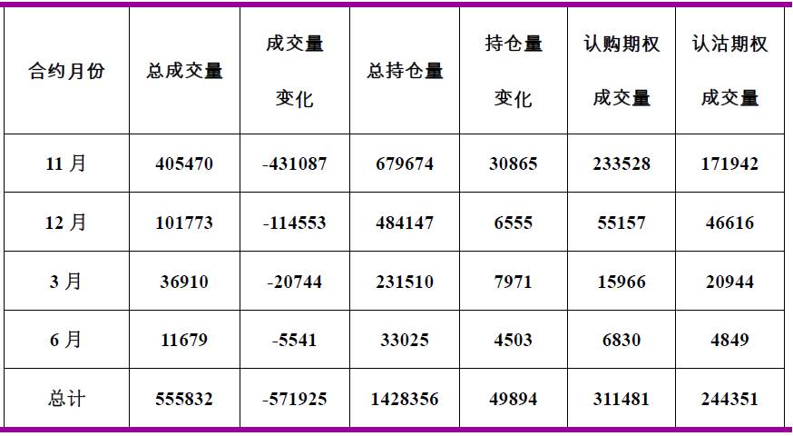 2、期权成交持仓情况 成交量减少 持仓量增加