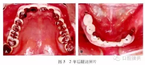 治疗效果:患者自觉美观得到较大程度的改善,同时咀嚼食物有力,修复体密合,牙龈未见红肿,无其他牙髓症状。