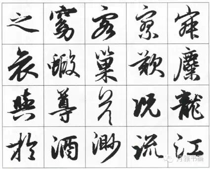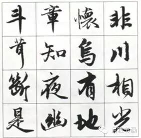 在行草书中,捺法也是富于变化的点画之一。除了上面分析的笔法上的不同处理方法外,它还有角度、轻重、方圆、收放等方面的变化。我们在临写时可先分类练习,待笔法熟练后,再结合具体字例找出它的变化规律,以使融会贯通。