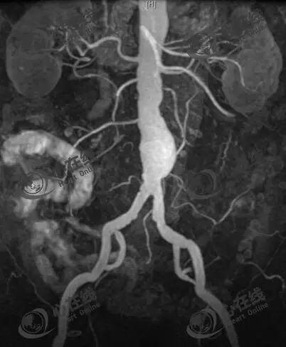 MRI成像准确度次于CTA,常用于腹主动脉瘤伴肾功能不全或造影剂过敏者。