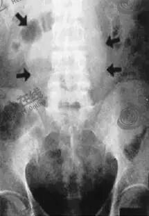 腹主动脉瘤行腹部X线检查时,瘤壁呈蛋壳样钙化,部分可见瘤体轮廓(如下图);当X线检查呈阴性时不能排除诊断。