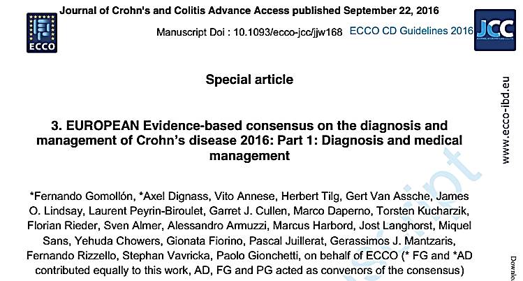 EUROPEAN Evidence-based consensus on the diagnosis and management of Crohn’s disease 2016: Part 1: Diagnosis and medical management