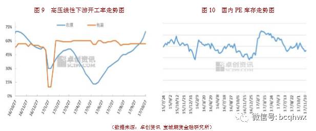 ●进入 11 月份,LLDPE 期价在触及 9500 低点后,开始震荡上涨,但在 10000 高点出遇阻回落, 基本在 9500-10000 元/吨之间震荡,主要是因为 WTI 原油价格连续创下两年来的新高,甲醇价格也维 持强势,下游需求仍处在旺季,库存基本维持在中间偏低位置,但进入 11 月中旬后,涉及 LLDPE 的 检修装置很少,农膜开工率开始回落,国内公布的投资等宏观数据疲软。