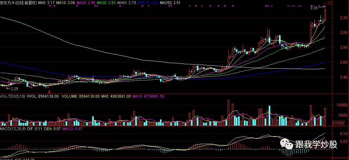 2、经过股灾之后,股价从5.77跌至2.19超跌幅度达到60%,仅仅相差2毛钱就再次跌回1块区间。而后的过程便是底部筑底洗盘的过程。在11月7日放量大阳线打破箱体格局,甚至一度冲击涨停,这是中期启动的明显标志。近期来看股价在1月3日以大阳线形式突破前期高点,后股价横盘整理受到前期高点的支撑。KDJ处于金叉范围内,MACD处于强势区域,MA均线成多头排列。今日底部放天量股价上涨,短期上涨空间打开。建议大家积极关注!