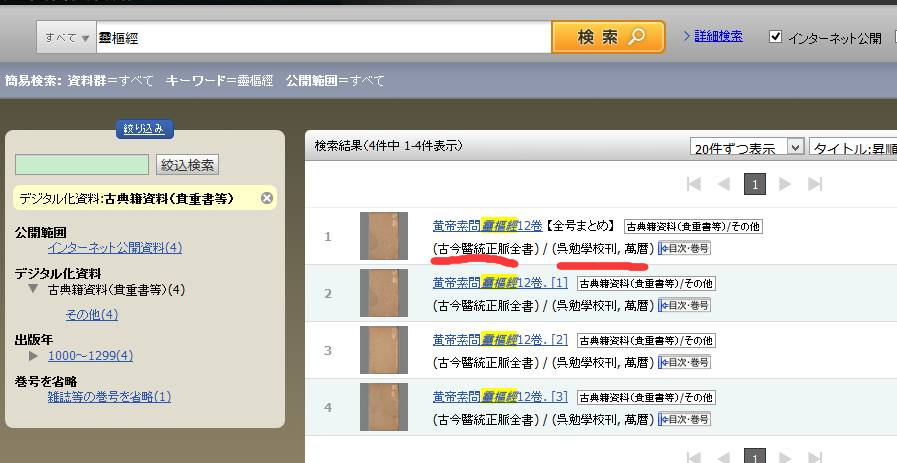 我去没有!不可能呀,所以这就是在搜索过程中可能出现的问题。因为“經”成了“経”,所以在应用这几个日本的网站搜索的时候可以简化,只搜索你需要书籍中的主要字段即可,比如“灵枢”“素问”“难经”这样的,不要写的太全,越全越容易出错。。当然你会日语那除外。所以这里还是拿素问举个例子吧。