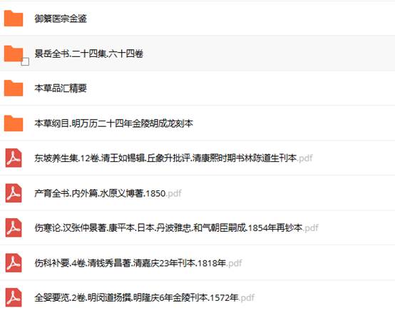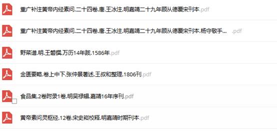 书格的下载相对更加的简单,甚至书格给出了目前所有资源的数据总库(https://sz.shuge.org:8881/s/9ovyU7sPvNDjg9B?path=%2F),直接进入这个网址就可以以目录查阅目前书格所收录的所有书籍。中医类目前还在完善中,目前包括以下书籍。