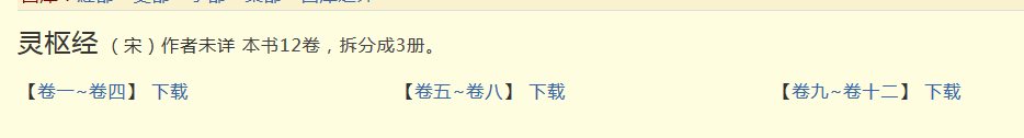 这个网站也是中文简体的,搜索也是支持简体中文的哈哈,还是拿《灵枢经》当例子,搜到两个版本,第一个其实是史崧那个版本的