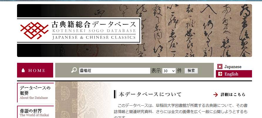 5.早稻田大学图书馆http://www.wul.waseda.ac.jp/kotenseki/index.html
