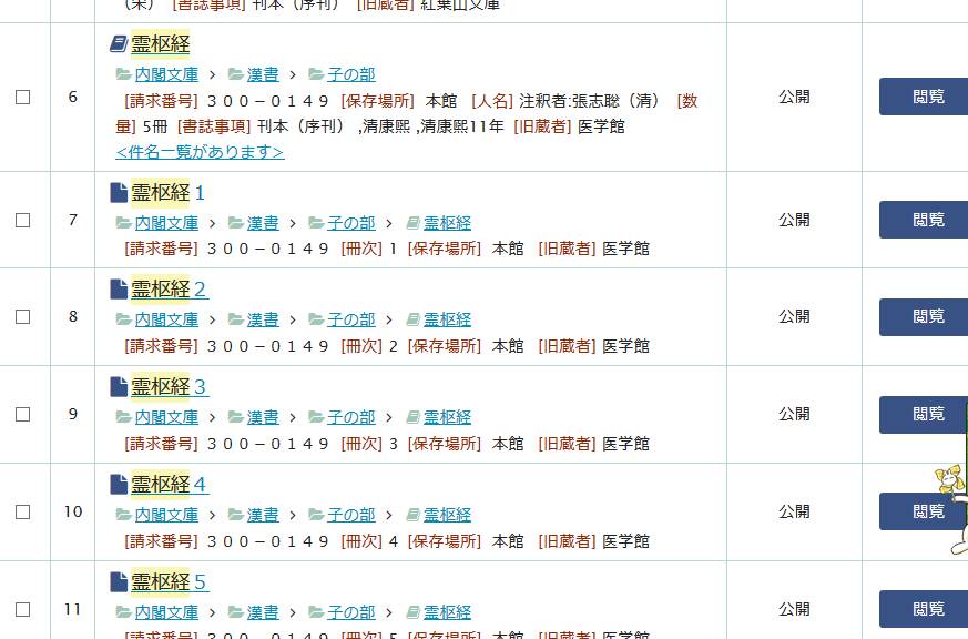 接下来是检索,又得用繁体字了,又得用繁体字啦!继续拿灵枢举例,哇,直接搜出来一大片啊,然后选择相应的版本,点击后边的阅览就好,有些条目是不能阅览的,略过就好了。