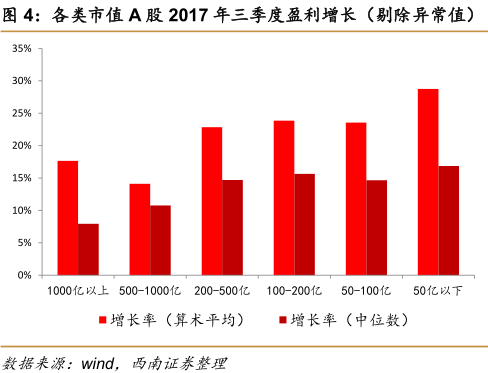 ○从利润增速上来看,A股不同市值的公司之间没有显著区别。