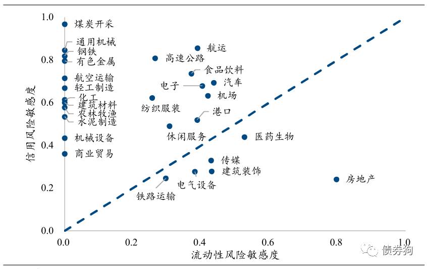 图表3:各行业信用利差对信用风险和流动性风险的敏感度