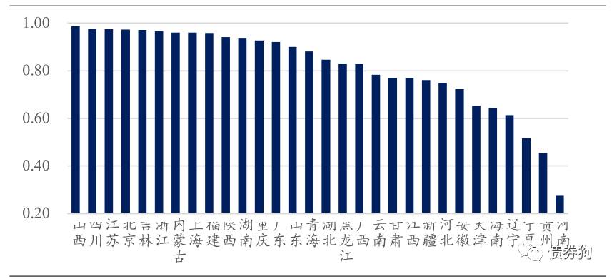 从结果来看,分评级方面,AAA与AA评级的风险扩散性较高,AA+则相对较低,这是由于AA+的主体市场认知分歧相对更大,单一主体出现风险后也就更难套用到其他主体,因而扩散性更弱。分企业性质方面,民企与央企的风险扩散性较高,地方国企则较低,我们认为这一现象的原因与分评级的类似,都是由于首尾两端市场认知更一致造成的。分行业方面,钢铁、纺织服装、煤炭等行业自身风险较高的同时,扩散性也较高,需要关注;机械行业由于子行业众多,因而风险扩散性并不强。分区域方面,山西、四川风险扩散性较高;河南、贵州等地风险扩散性较低;与其他类别相比,区域之间风险扩散程度的差异更大。