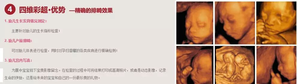 在某民营妇产医院的网页上看到的宣传,把四维彩超和更精确的排畸放在一起,欺负咱普通人不懂医学知识啊。