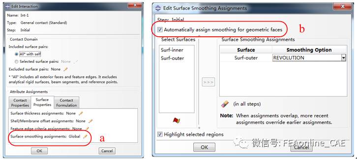 为解决这类问题,Abaqus提供了geometric correction功能,光顺接触分析时接触应力。如图2右使用几何修正后的应力分布,明显更为光顺。下面讲述如何使用geometric correction功能。