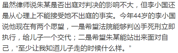 对此,李小国的附带民事诉讼律师秦春晖向记者表示,。“首先,法庭本身并未要求朱某出庭,这就说明她是否出庭不重要。”