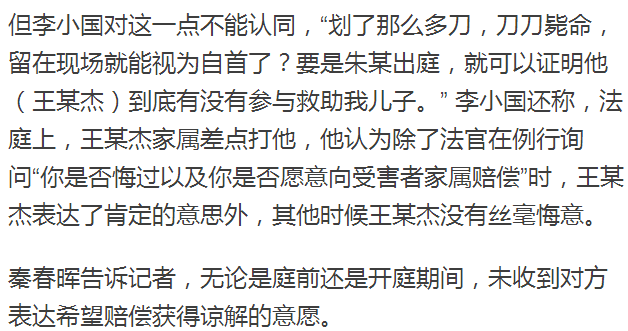 但朱某和王某杰之间的事,李小国说儿子从未对自己提起过。他说,朱某在事后曾说他已经与王某杰分手了,。