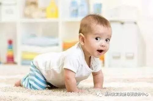 8个月的时候,宝宝开始爬啦!开始由蠕虫类进化到爬虫类了,学会了四肢配合运动,开始爬行了,这时候要小心了,注意别掉下床!