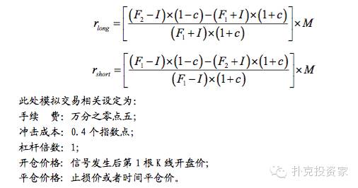 记 F1 为开仓成交价,F2 为平仓成交价,c 为单边手续费率,I 为单边冲击成本,M 为杠杆倍数,则单次交易收益率为