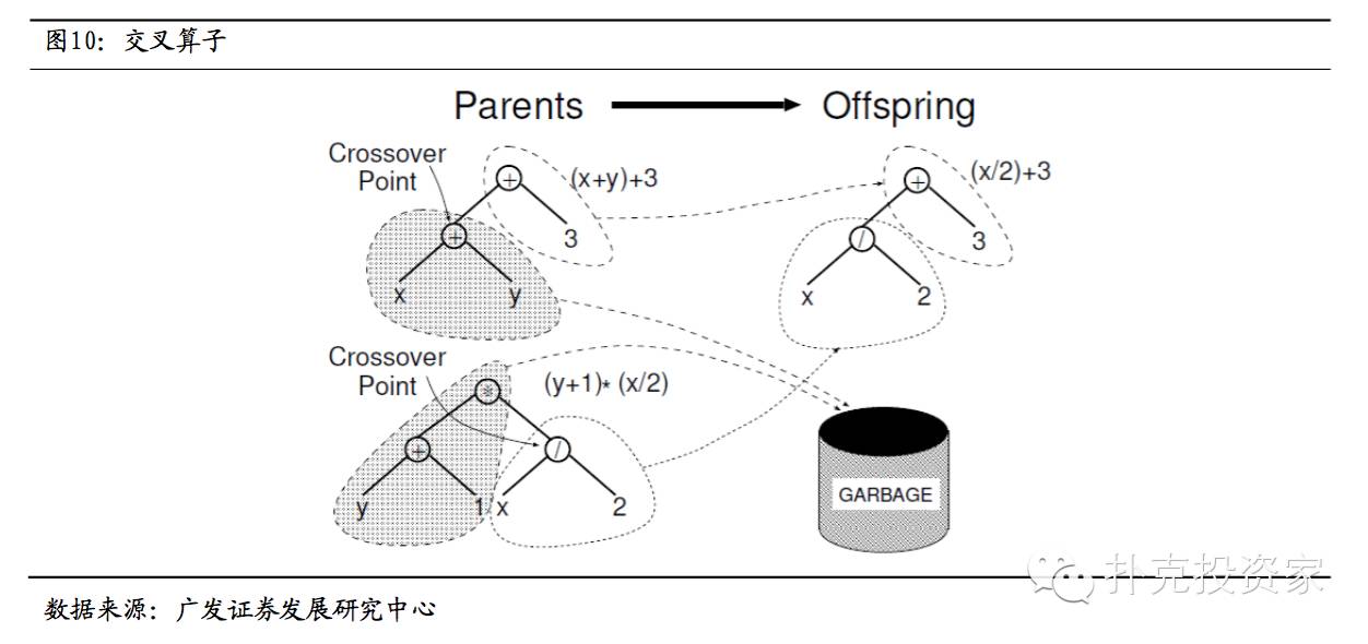 而这一过程与达尔文之物种进化颇有相似之处,物种适者生存及进化繁衍的过程与 系统交易策略强者为王及策略改进升级的过程如出一辙,人工智能领域的遗传规划因此 可以用来进行系统交易策略研发。