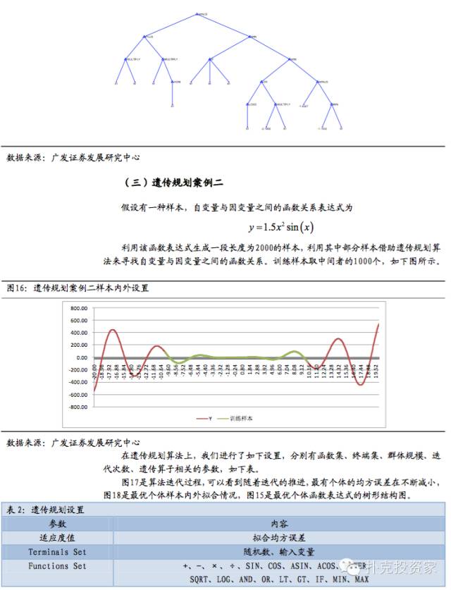 图14是最优个体样本内外拟合情况,图15是最优个体函数表达式的树形结构图。