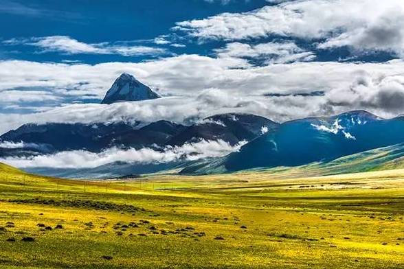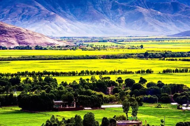 盛夏,这里处处都是盛开的油菜花,铺天盖地美到爆,再加上白色的雪山,绿色的牧草,整个草原犹如一幅幅风景画一般,让人流连忘返。