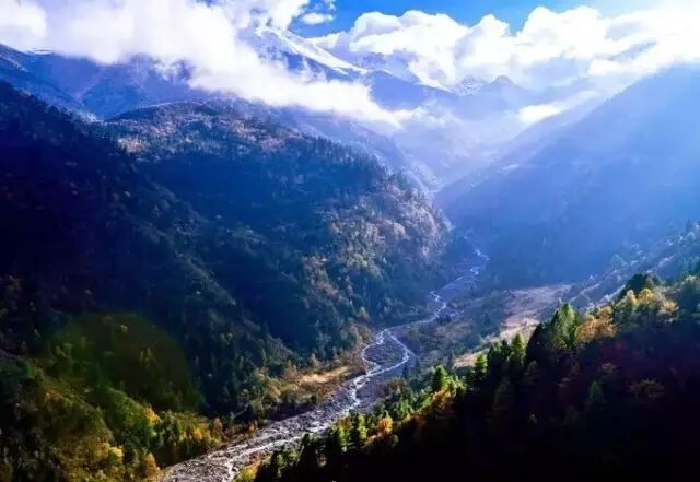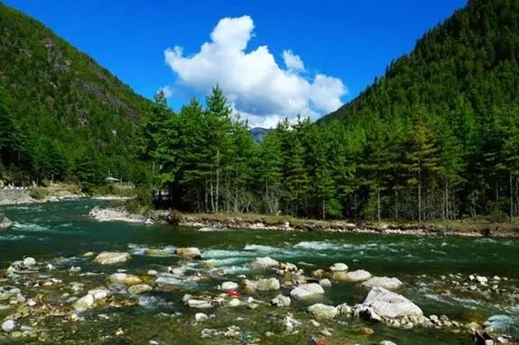 层层叠叠的森林,潺潺的流水,湛蓝湛蓝的天空,不禁让人怀疑这里不是西藏,而是秀丽的江南。