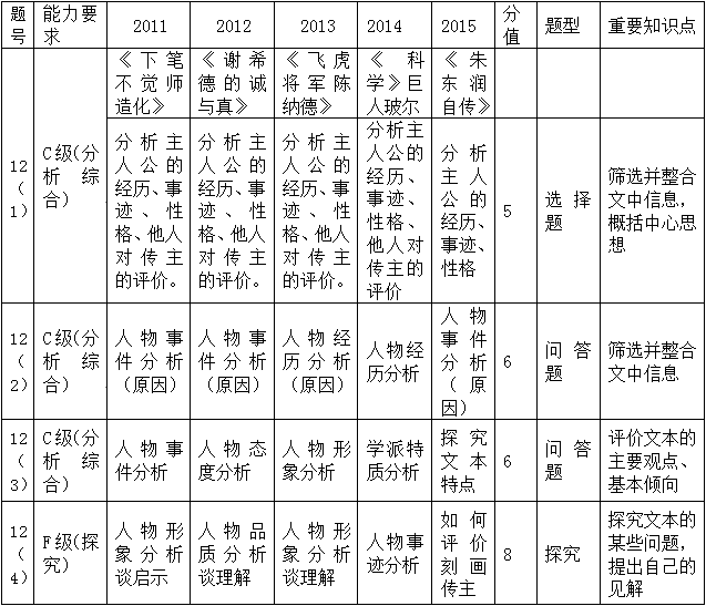 近5年全国新课标卷对选考部分考查点和题型相对稳定,均是小说和人物传记;
