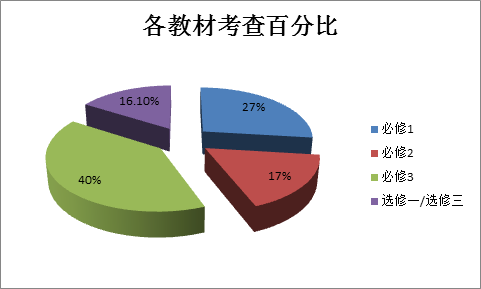 必修三比最大为40%;其次为必修一27%;必修二17%;选修一/选修三为二选一,占比16.1%。
